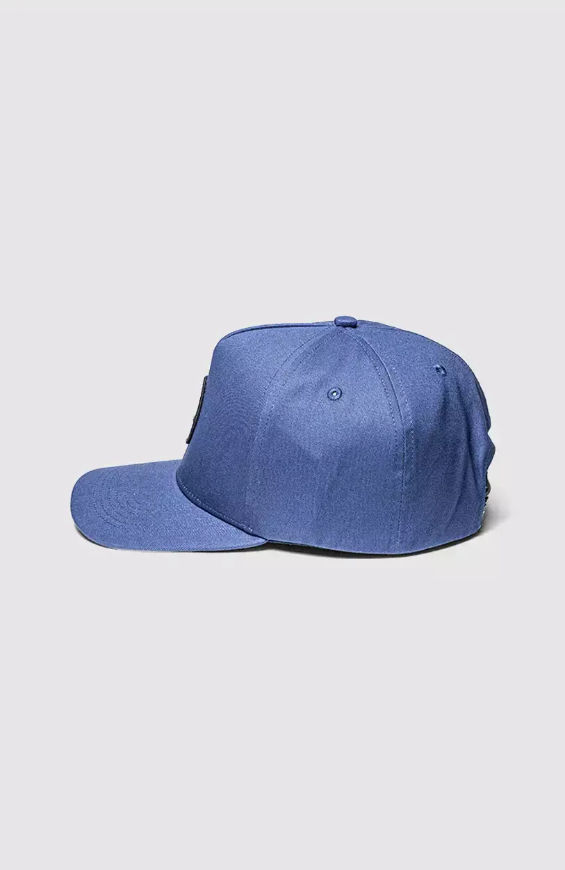 Gorra en color azul medio, confeccionada en algodón twill resistente. De diseño estructurado con seis paneles y ojales bordados para ventilación. Presenta visera curva y ajuste trasero regulable. El frente está decorado con un parche bordado redondo con diseño de ola y logo O'Neill.